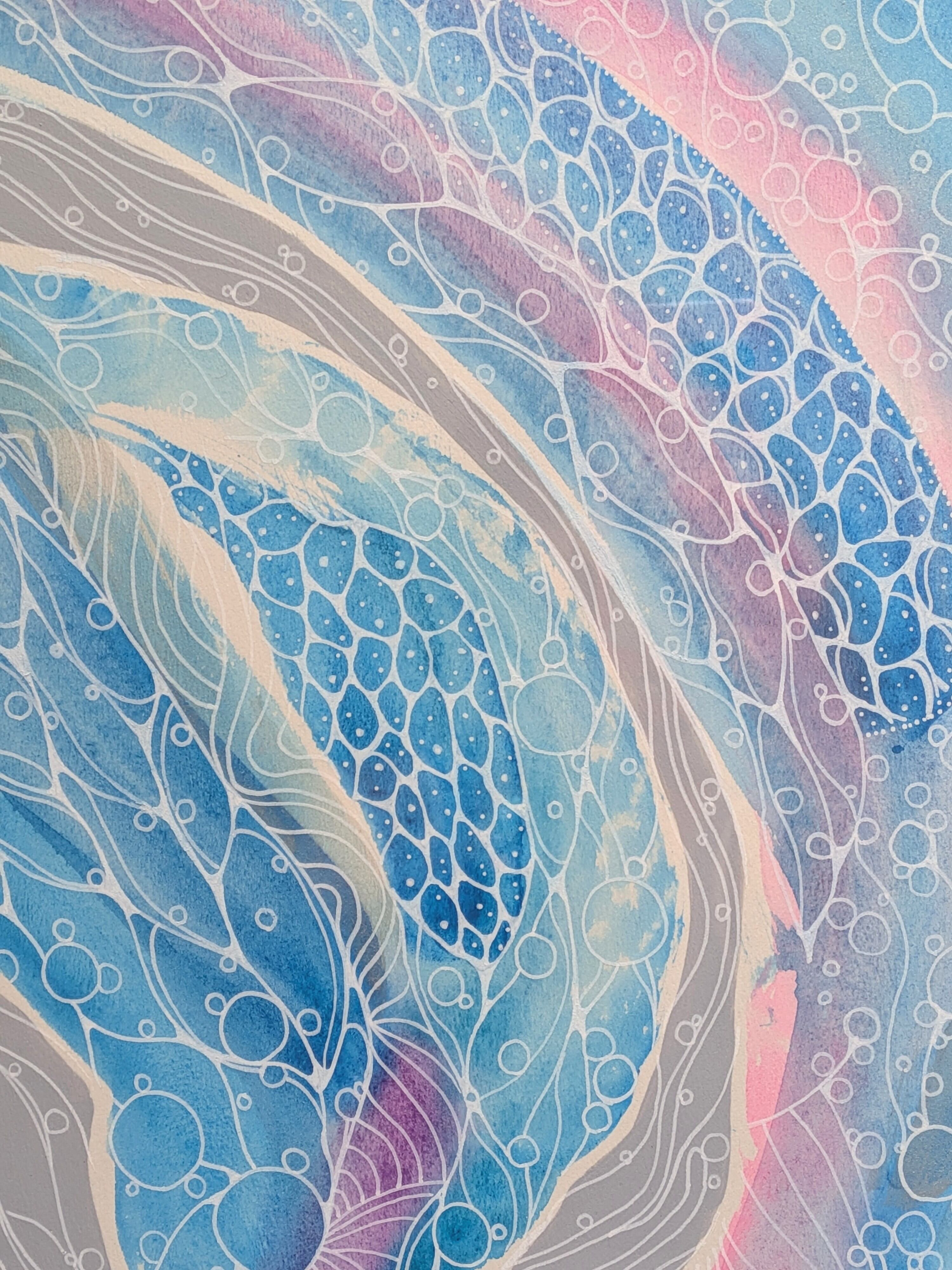 2025 A3 水彩、アクリル、 水性顔料マーカ ー、水彩紙。 額付き