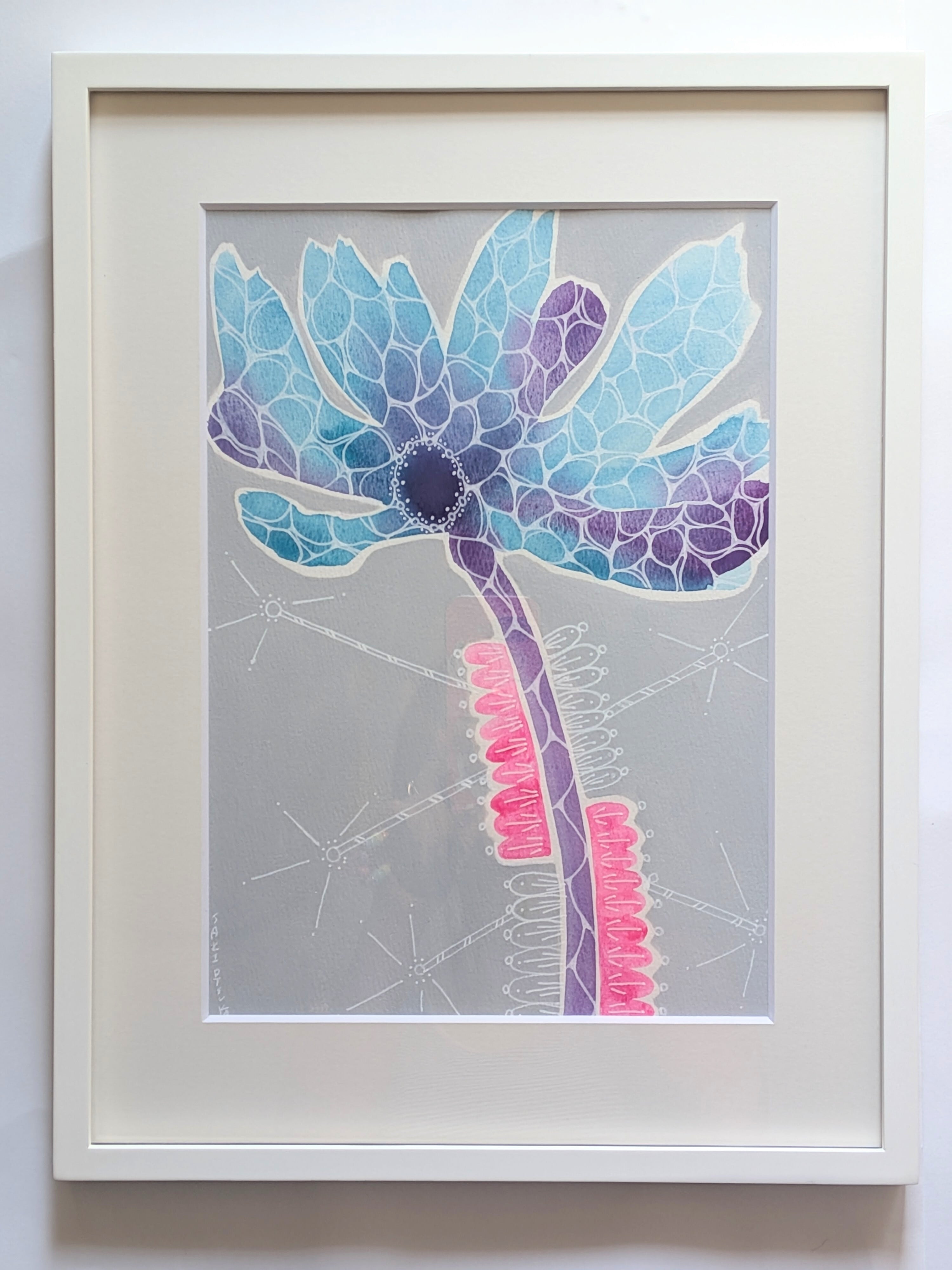 2025 A4 水彩、アクリル、 水性顔料マーカ ー、水彩紙。 額付き