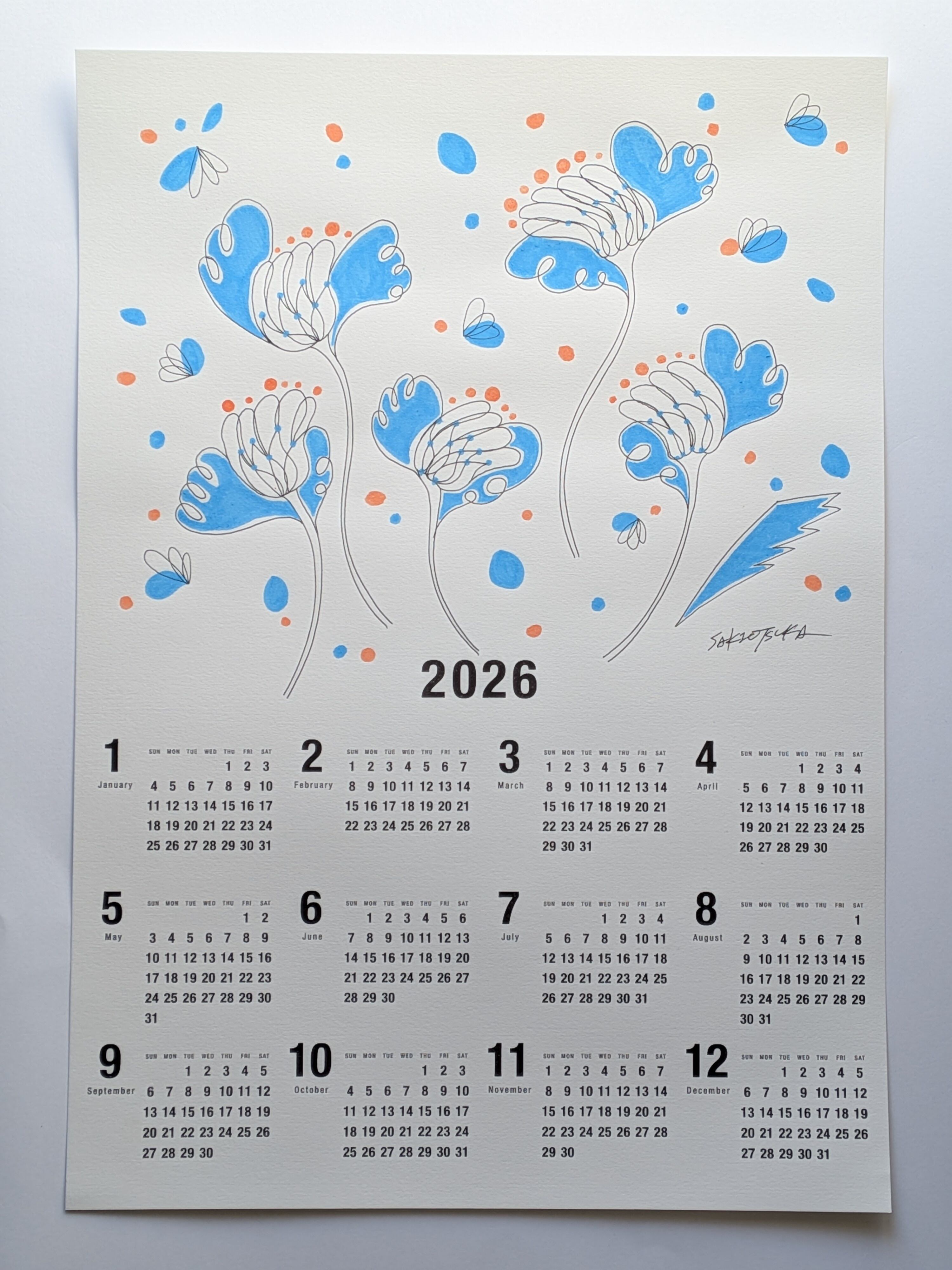 A3サイズのカレンダーです。もちろんサイン入りの1点もの!