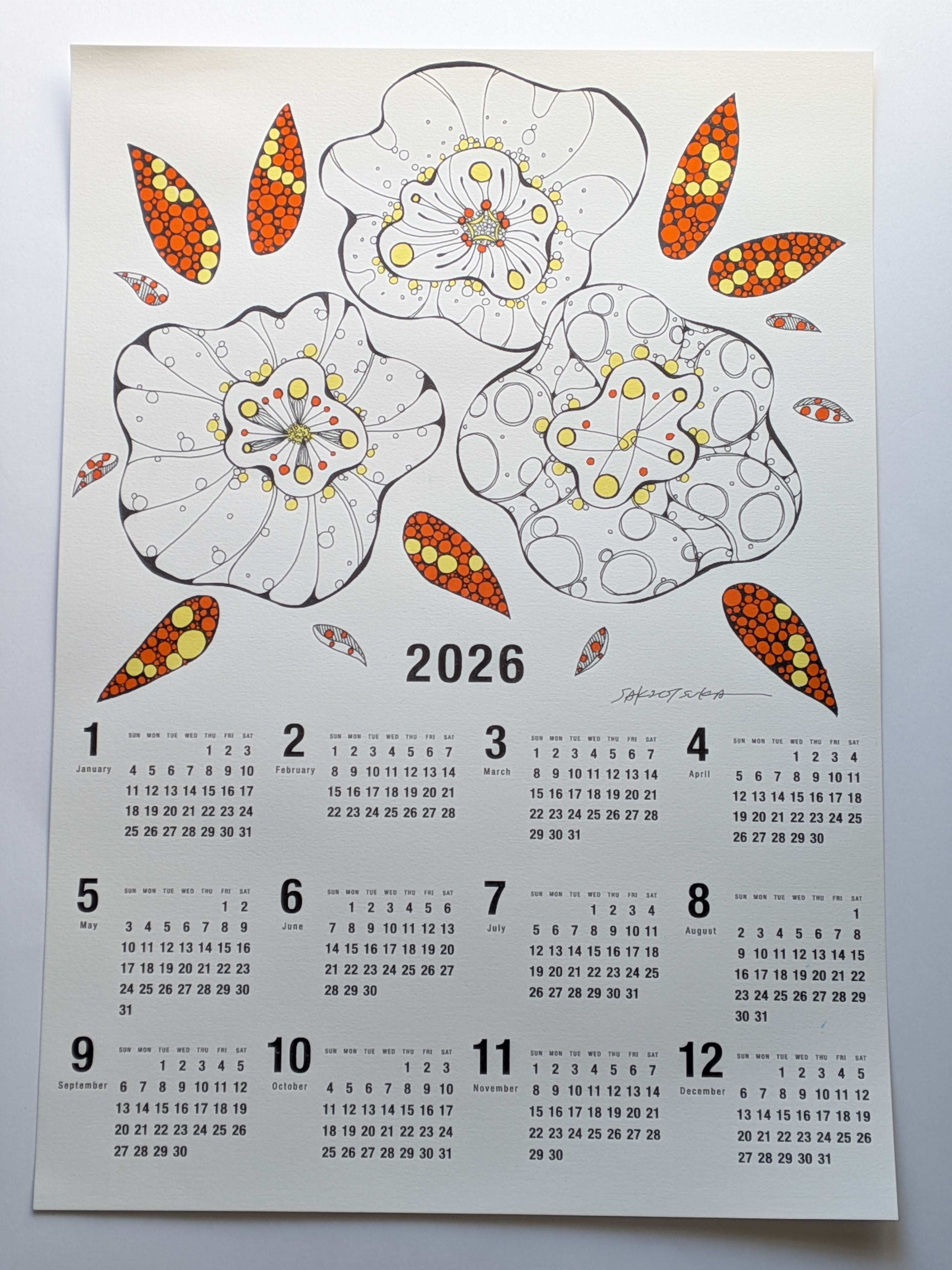 A3サイズのカレンダーです。もちろんサイン入りの1点もの!