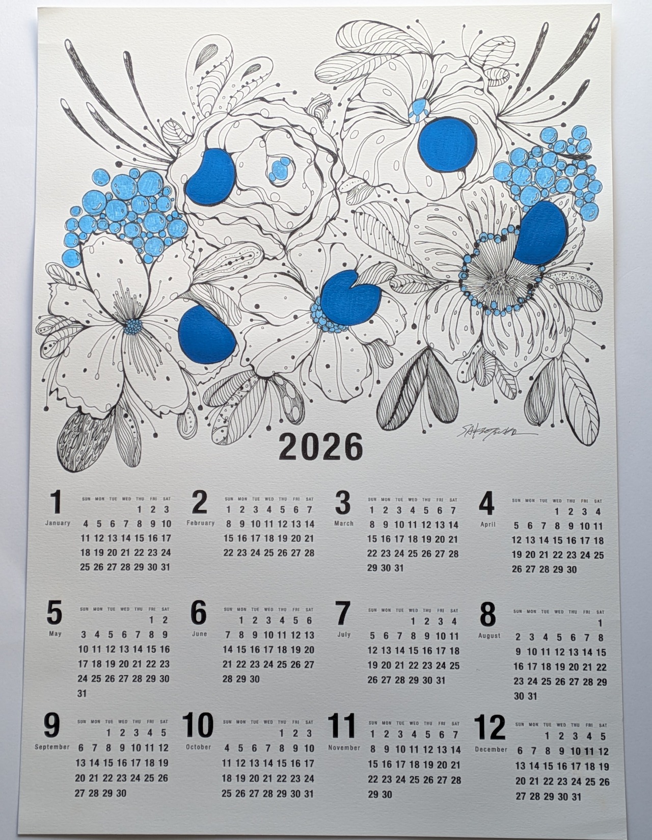 A3サイズのカレンダーです。もちろんサイン入りの1点もの!