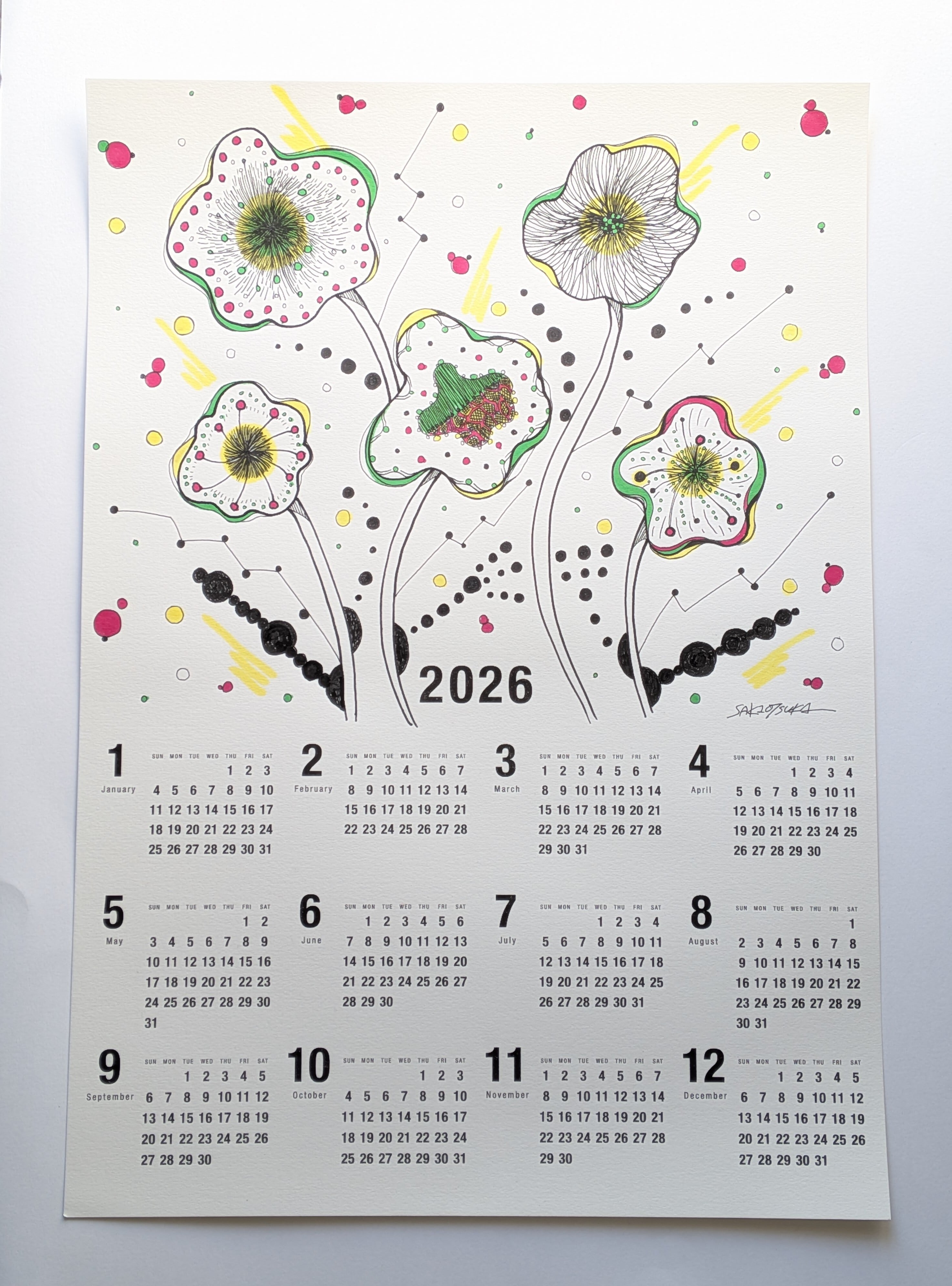A3サイズのカレンダーです。もちろんサイン入りの1点もの!